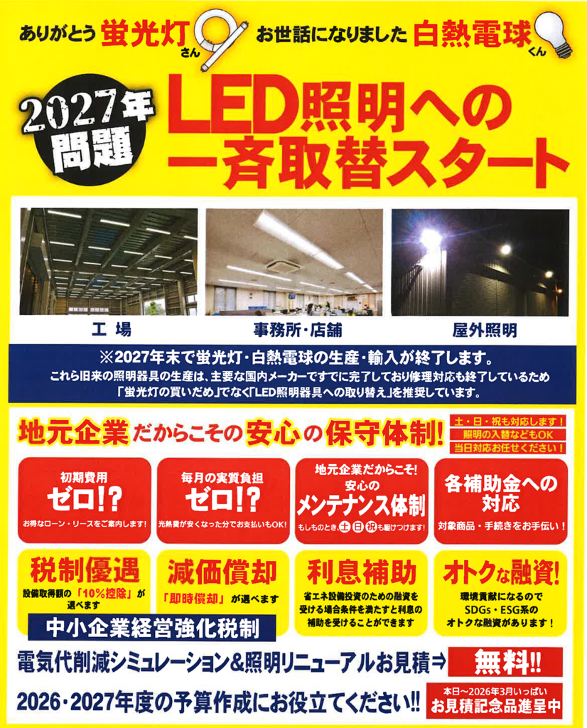 弊社では今年に入ってから「倉吉商工会議所だより」にチラシを折り込みし早めのお取替えを推奨しています。(※上記のチラシです)