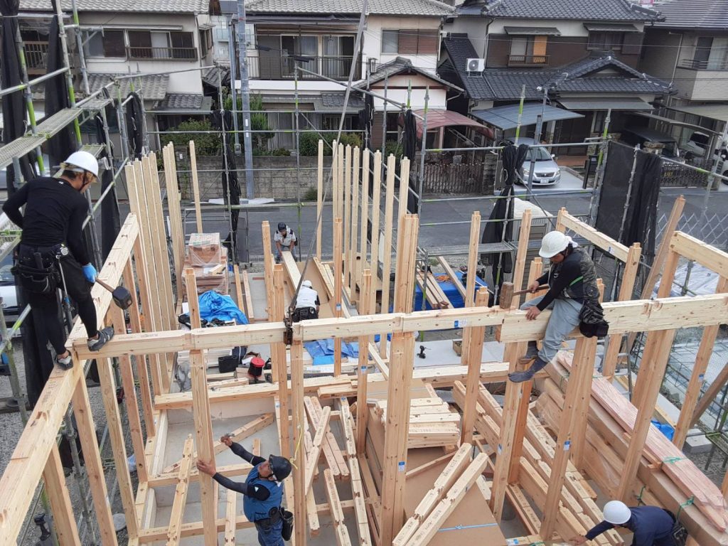 春頃から工事が始まり、解体の仮設工事、各種申請、秋ごろには宅内配線工事と進み、建築のほうが予定より遅れながらも12月になっていよいよ太陽光の設置が始まりました。